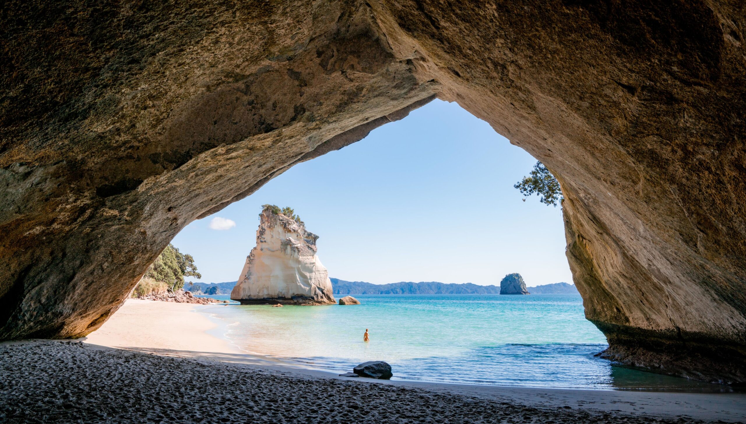 Arguably the most photographed location in the Coromandel, Cathedral Cove is a must-visit. Accessible by a 30–40 minute walking track or by kayak, its natural rock arch frames a picture-perfect view of white sand and turquoise water. It’s also a prime snorkelling and swimming spot.